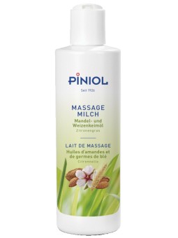Piniol Massagemilch Mandel- und Weizenkeimöl Zitronengras ohne Paraffin auf natürlicher Basis für die Massage. Mit den positiven Eigenschaften der klassischen Massagemilch.